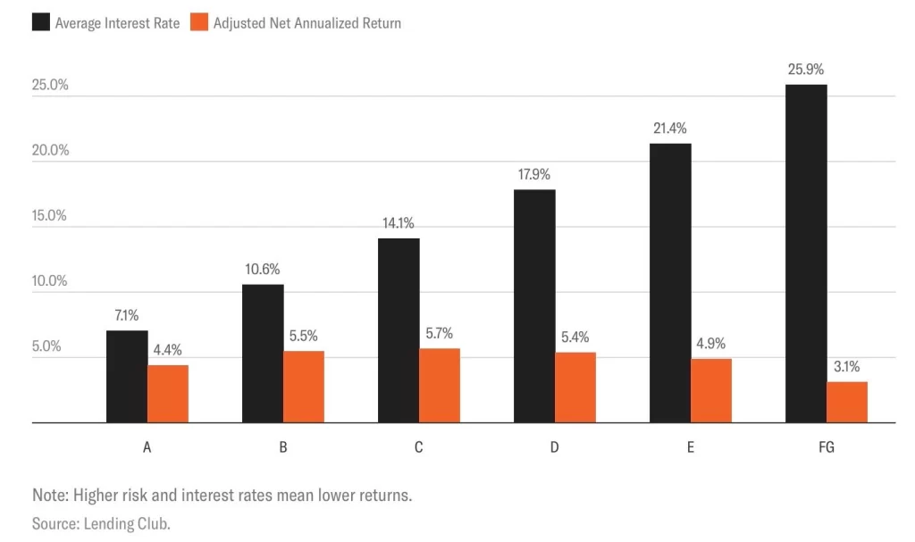 Something similar transpires in the credit card industry. Credit card companies make unsecured loans to borrowers and because the loans are unsecured, they charge elevated interest rates. But the effective rate of return the credit card companies earn on their loan portfolio is likely similar to what the LendingClub data shows.